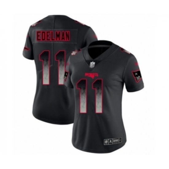 Women's New England Patriots #11 Julian Edelman Limited Black Smoke Fashion Football Jersey