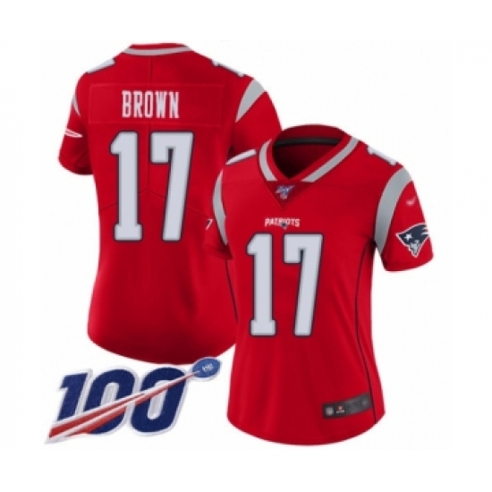 >Women's New England Patriots #17 Antonio Brown Limited Red Inverted Legend 100th Season Football Jersey