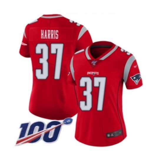 >Women's New England Patriots #37 Damien Harris Limited Red Inverted Legend 100th Season Football Jersey