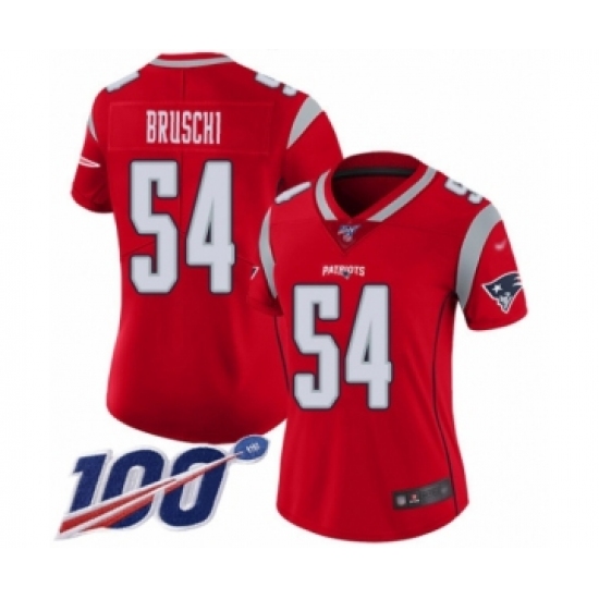 >Women's New England Patriots #54 Tedy Bruschi Limited Red Inverted Legend 100th Season Football Jersey