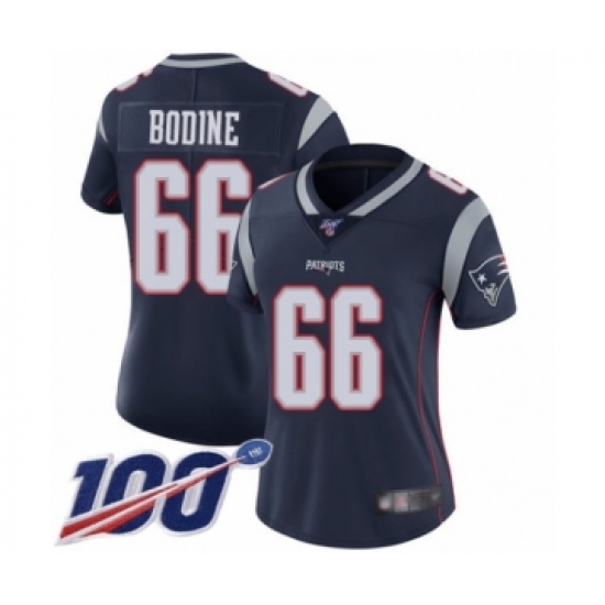 Women's New England Patriots #66 Russell Bodine Navy Blue Team Color Vapor Untouchable Limited Player 100th Season Football Jersey