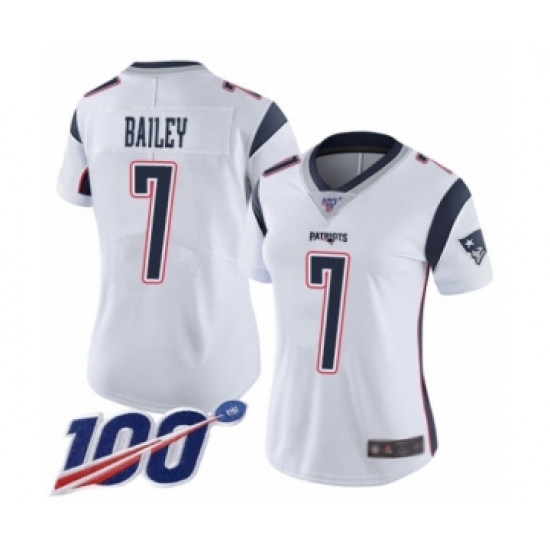 Women's New England Patriots #7 Jake Bailey White Vapor Untouchable Limited Player 100th Season Football Jersey