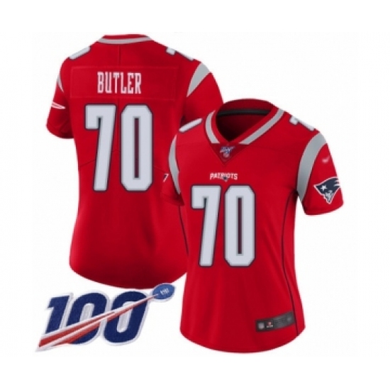 >Women's New England Patriots #70 Adam Butler Limited Red Inverted Legend 100th Season Football Jersey