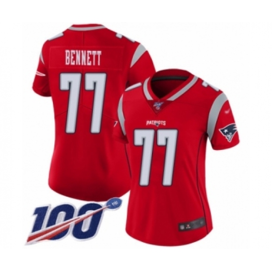 >Women's New England Patriots #77 Michael Bennett Limited Red Inverted Legend 100th Season Football Jersey