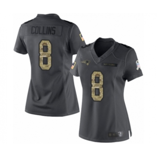 >Women's New England Patriots #8 Jamie Collins Limited Black 2016 Salute to Service Football Jersey