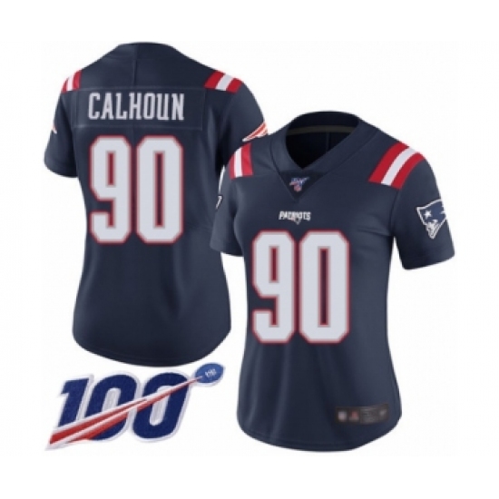 Women's New England Patriots #90 Shilique Calhoun Limited Navy Blue Rush Vapor Untouchable 100th Season Football Jersey