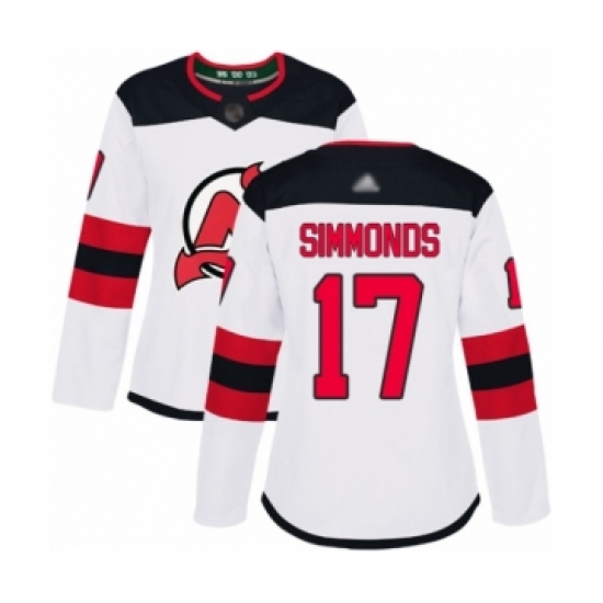 >Women's New Jersey Devils #17 Wayne Simmonds Authentic White Away Hockey Jersey