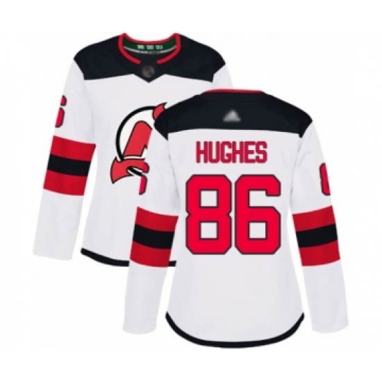 Women's New Jersey Devils #86 Jack Hughes Authentic White Away Hockey Jersey