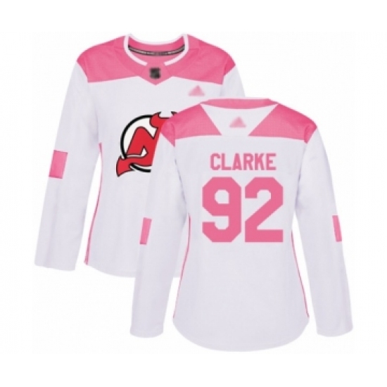 Women's New Jersey Devils #92 Graeme Clarke Authentic White Pink Fashion Hockey Jersey