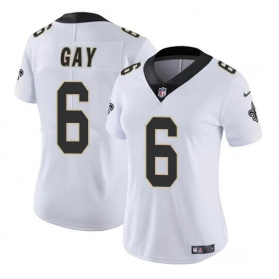 >Women's New Orleans Saints #6 Willie Gay White Vapor Football Stitched Game Jersey(Run Small)