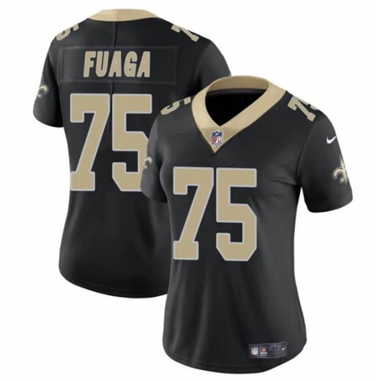 >Women's New Orleans Saints #75 Taliese Fuaga Black 2024 Draft Vapor Stitched Game Jersey(Run Small)
