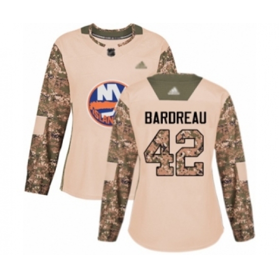 >Women's New York Islanders #42 Cole Bardreau Authentic Camo Veterans Day Practice Hockey Jersey