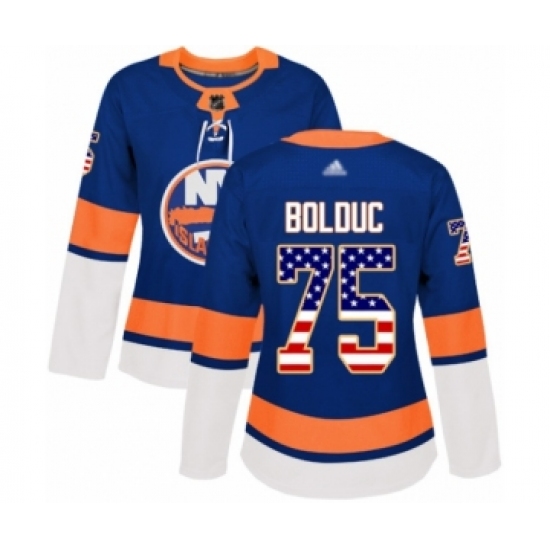 >Women's New York Islanders #75 Samuel Bolduc Authentic Royal Blue USA Flag Fashion Hockey Jersey