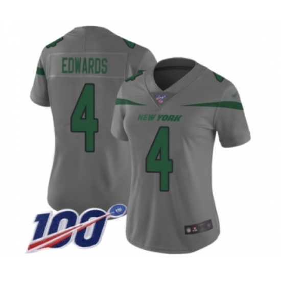 >Women's New York Jets #4 Lac Edwards Limited Gray Inverted Legend 100th Season Football Jersey