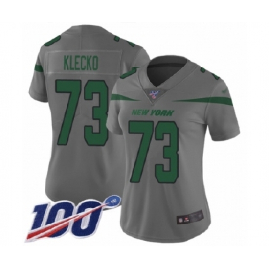 >Women's New York Jets #73 Joe Klecko Limited Gray Inverted Legend 100th Season Football Jersey