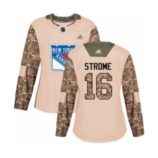 >Women's New York Rangers #16 Ryan Strome Authentic Camo Veterans Day Practice Hockey Jersey
