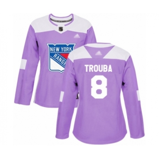 >Women's New York Rangers #8 Jacob Trouba Authentic Purple Fights Cancer Practice Hockey Jersey