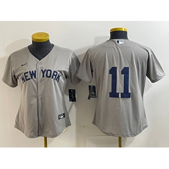 >Women's New York Yankees #11 Anthony Volpe 2021 Grey Field of Dreams Cool Base Stitched Jersey