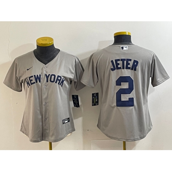 Women's New York Yankees #2 Derek Jeter Name 2021 Grey Field of Dreams Cool Base Stitched Jersey