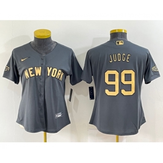 >Women's New York Yankees #99 Aaron Judge Grey 2022 All Star Stitched Cool Base Nike Jersey