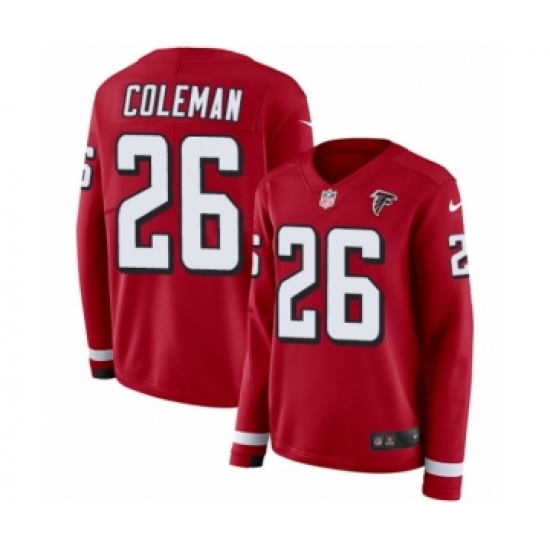 >Women's Nike Atlanta Falcons #26 Tevin Coleman Limited Red Therma Long Sleeve NFL Jersey