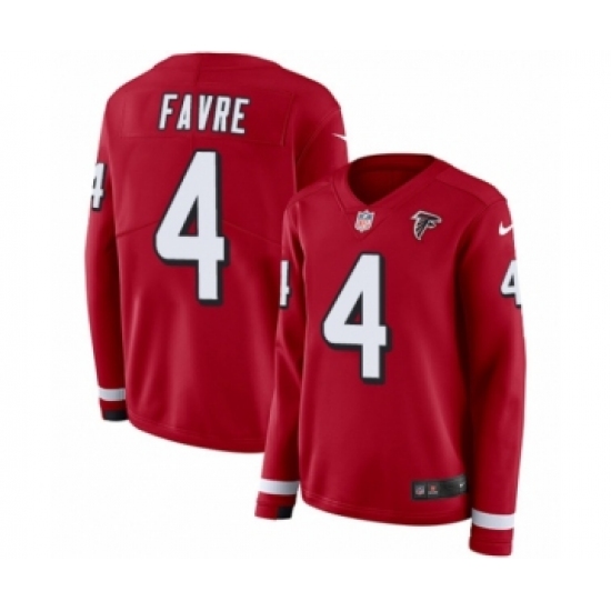 Women's Nike Atlanta Falcons #4 Brett Favre Limited Red Therma Long Sleeve NFL Jersey
