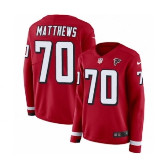 Women's Nike Atlanta Falcons #70 Jake Matthews Limited Red Therma Long Sleeve NFL Jersey