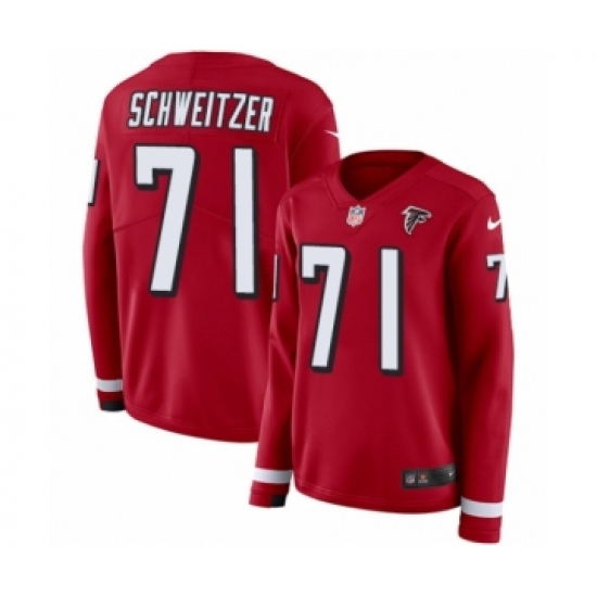 >Women's Nike Atlanta Falcons #71 Wes Schweitzer Limited Red Therma Long Sleeve NFL Jersey