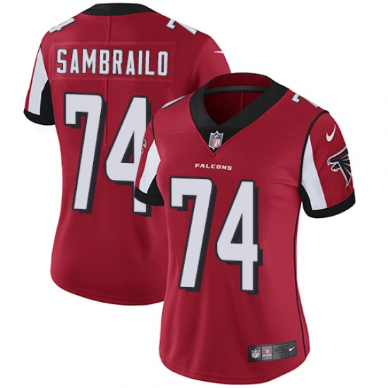 Women's Nike Atlanta Falcons #74 Ty Sambrailo Red Team Color Vapor Untouchable Limited Player NFL Jersey