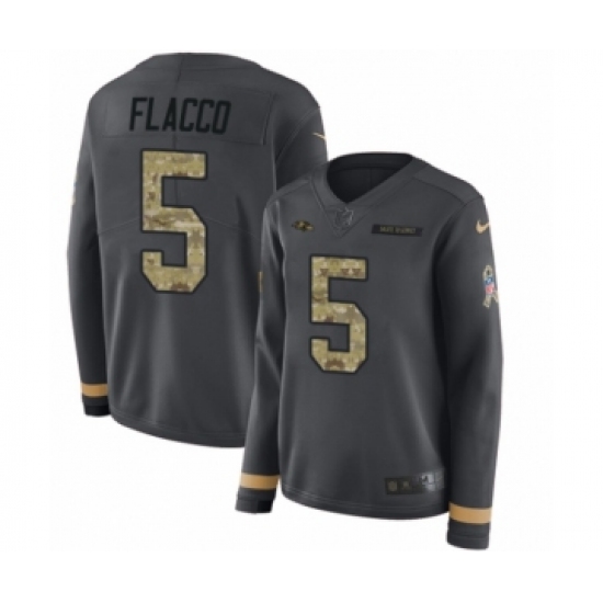 Women's Nike Baltimore Ravens #5 Joe Flacco Limited Black Salute to Service Therma Long Sleeve NFL Jersey