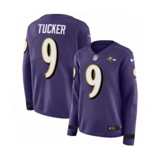 >Women's Nike Baltimore Ravens #9 Justin Tucker Limited Purple Therma Long Sleeve NFL Jersey