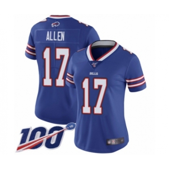 >Women's Nike Buffalo Bills #17 Josh Allen Royal Blue Team Color Vapor Untouchable Limited Player 100th Season NFL Jersey