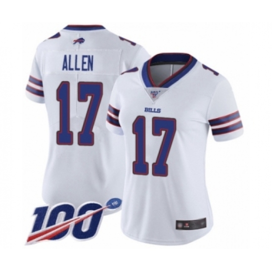 Women's Nike Buffalo Bills #17 Josh Allen White Vapor Untouchable Limited Player 100th Season NFL Jersey