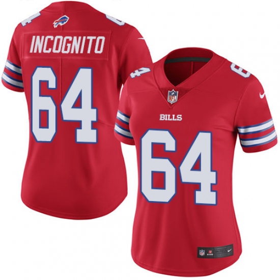 Home>NFL>Buffalo Bills>Richie Incognito>Women's Nike Buffalo Bills #64 Richie Incognito Limited Red Rush Vapor Untouchable NFL Jersey