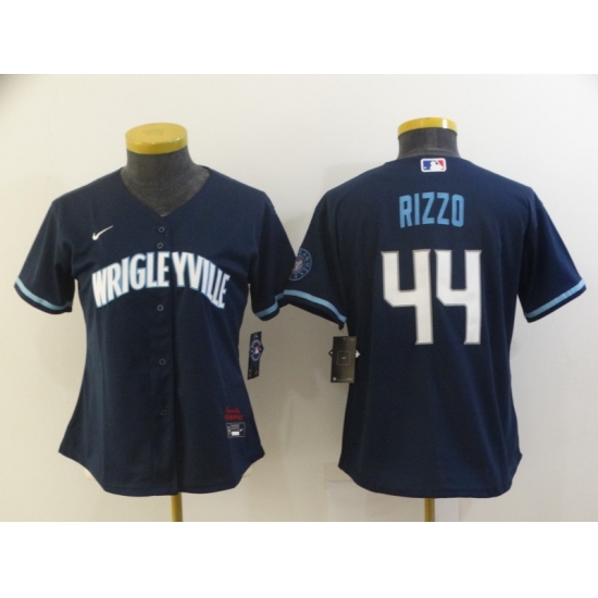 >Women's Nike Chicago Cubs #44 Anthony Rizzo Navy City Royal Alternate Stitched Baseball Jersey
