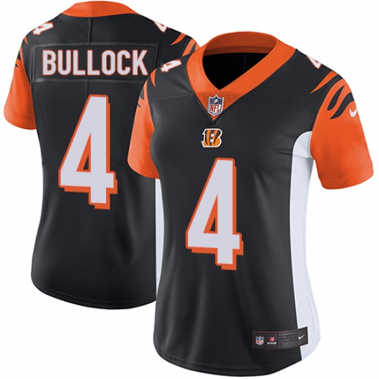 Home>NFL>Cincinnati Bengals>Randy Bullock>Women's Nike Cincinnati Bengals #4 Randy Bullock Vapor Untouchable Limited Black Team Color NFL Jersey