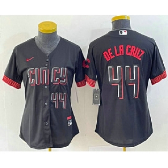 Women's Nike Cincinnati Reds #44 Elly De La Cruz Number Black 2023 City Connect Cool Base Stitched Baseball Jersey2
