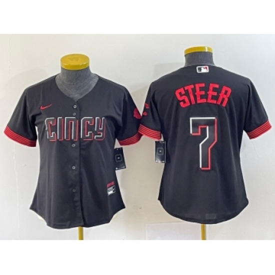 Women's Nike Cincinnati Reds #7 Spencer Steer Black 2023 City Connect Cool Base Stitched Baseball Jersey
