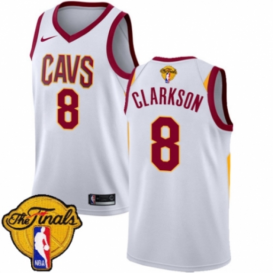 Women's Nike Cleveland Cavaliers #8 Jordan Clarkson Authentic White 2018 NBA Finals Bound NBA Jersey - Association Edition
