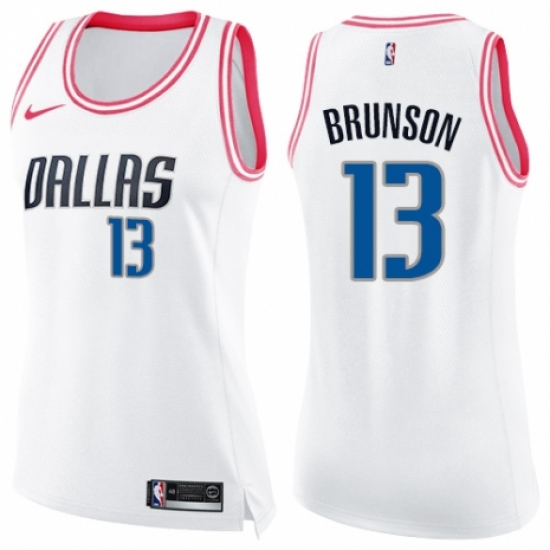 >Women's Nike Dallas Mavericks #13 Jalen Brunson Swingman White/Pink Fashion NBA Jersey