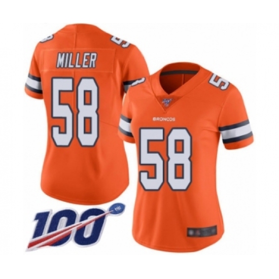 >Women's Nike Denver Broncos #58 Von Miller Limited Orange Rush Vapor Untouchable 100th Season NFL Jersey