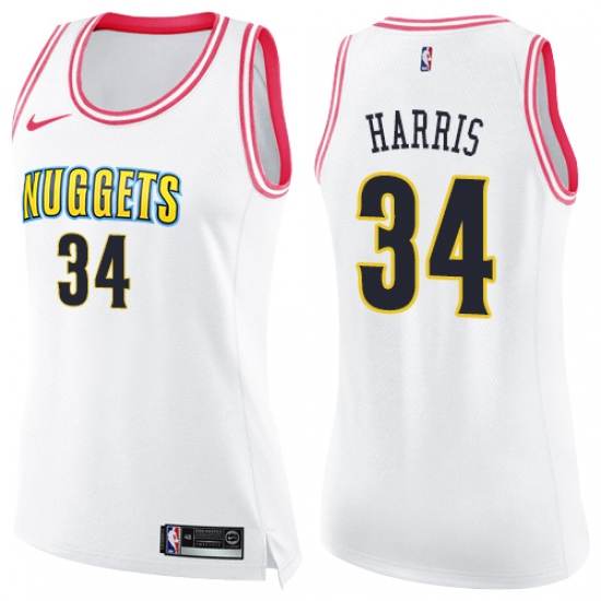 Women's Nike Denver Nuggets #34 Devin Harris Swingman White/Pink Fashion NBA Jersey