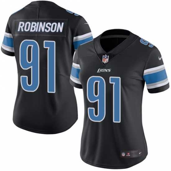 Women's Nike Detroit Lions #91 A'Shawn Robinson Limited Black Rush Vapor Untouchable NFL Jersey