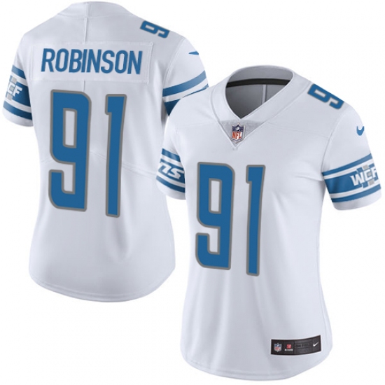 Women's Nike Detroit Lions #91 A'Shawn Robinson Limited White Vapor Untouchable NFL Jersey