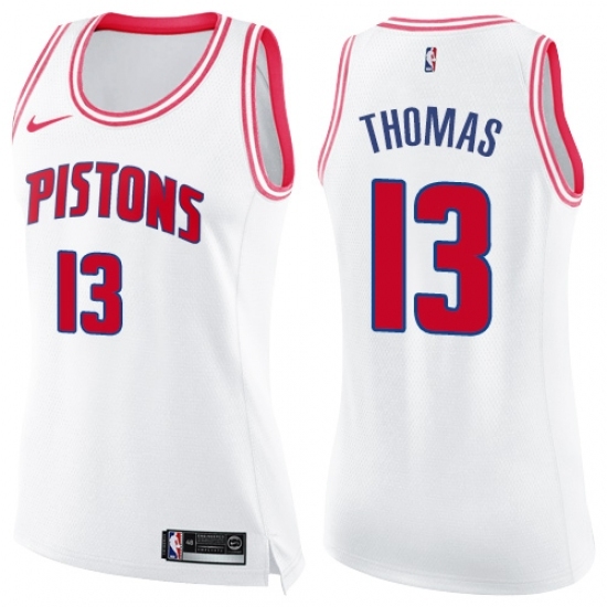 Women's Nike Detroit Pistons #13 Khyri Thomas Swingman White Pink Fashion NBA Jersey