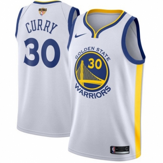 >Women's Nike Golden State Warriors #30 Stephen Curry Authentic White Home 2018 NBA Finals Bound NBA Jersey - Association Edition