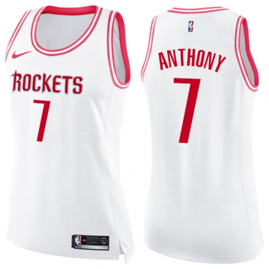 Women's Nike Houston Rockets #7 Carmelo Anthony Swingman White Pink Fashion NBA Jersey