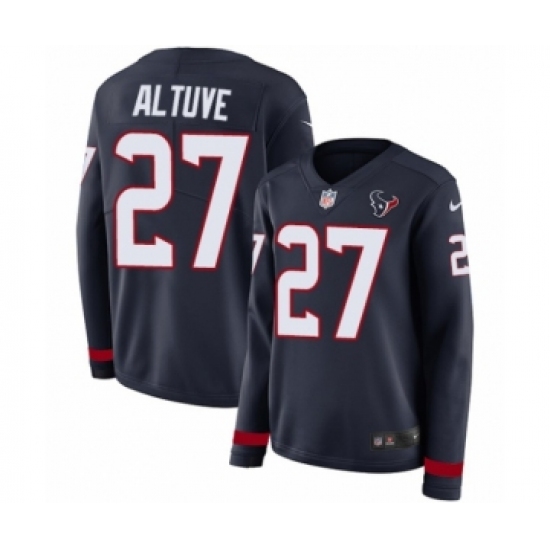 >Women's Nike Houston Texans #27 Jose Altuve Limited Navy Blue Therma Long Sleeve NFL Jersey