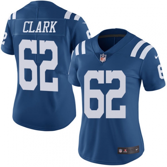 Home>NFL>Indianapolis Colts>Le'Raven Clark>Women's Nike Indianapolis Colts #62 Le'Raven Clark Limited Royal Blue Rush Vapor Untouchable NFL Jersey
