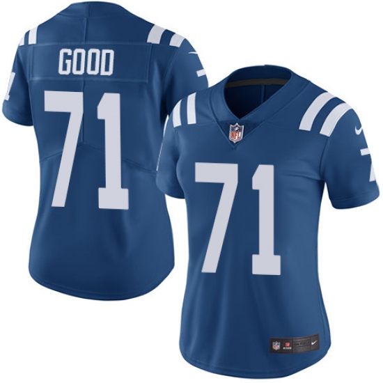Women's Nike Indianapolis Colts #71 Denzelle Good Royal Blue Team Color Vapor Untouchable Limited Player NFL Jersey